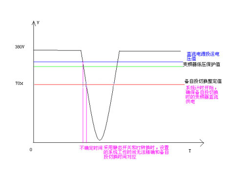 通過軟件設(shè)置母線欠壓保護(hù)閥值和計時(0.1S),使系統(tǒng)工作時間精確可控。